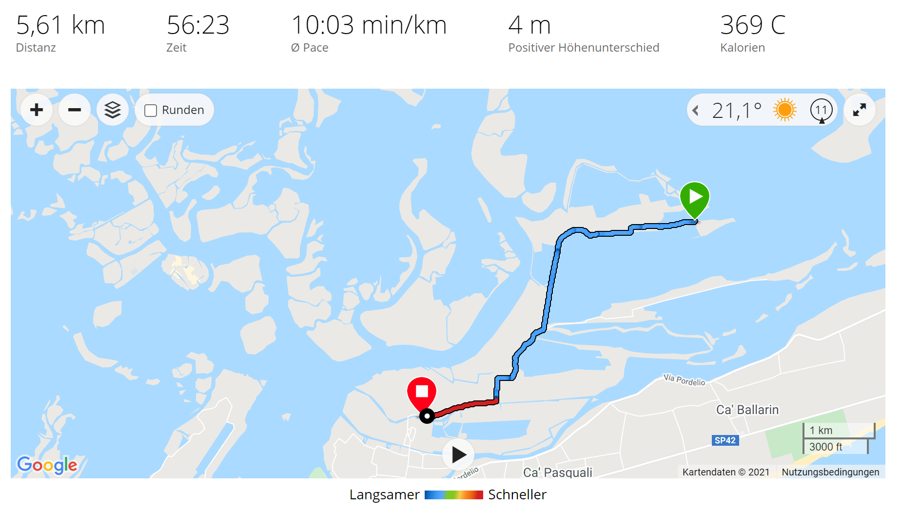 Das Wetter war wieder perfekt, in der Früh schon 21°C und tagsüber bis 25°C.