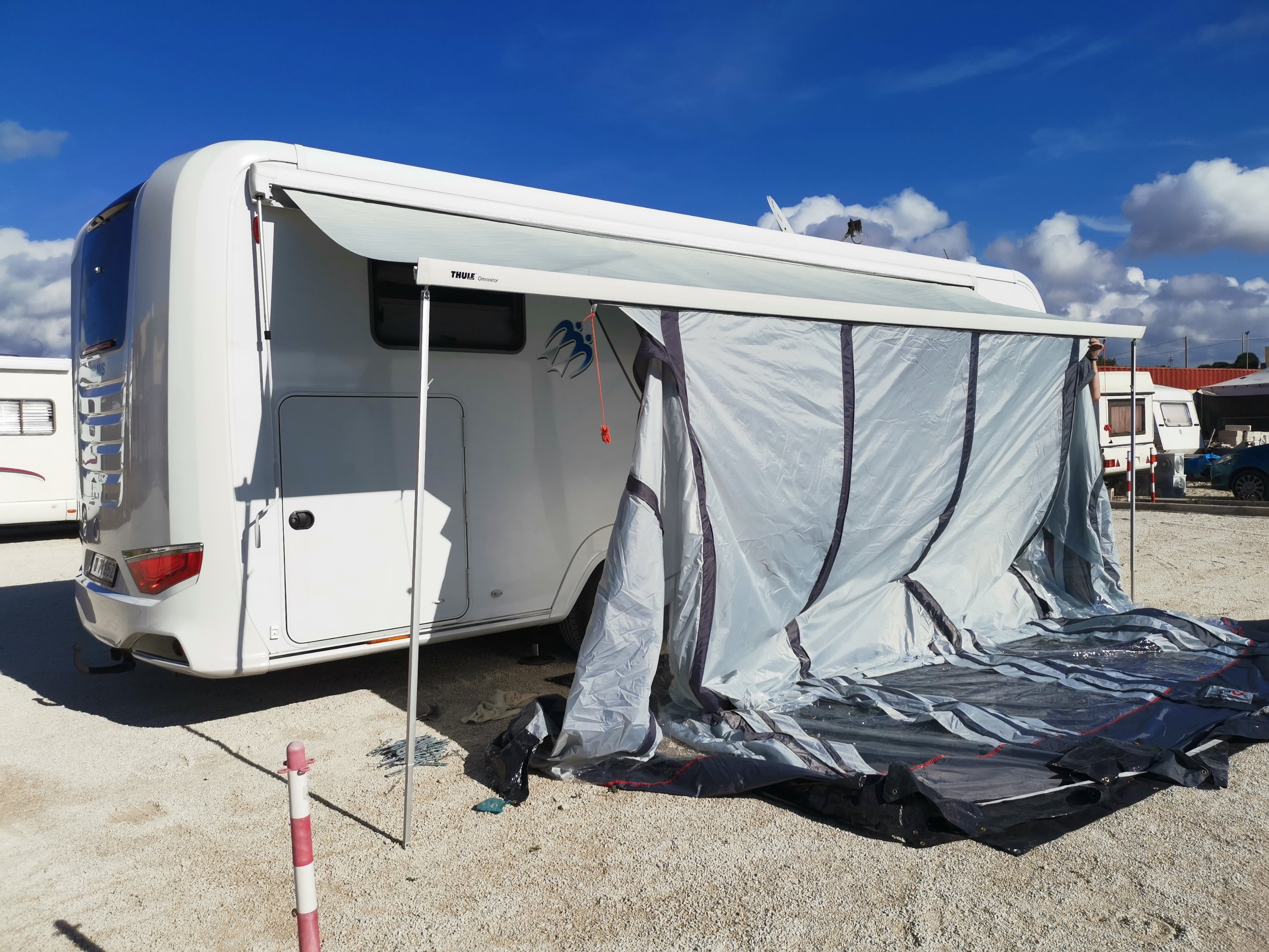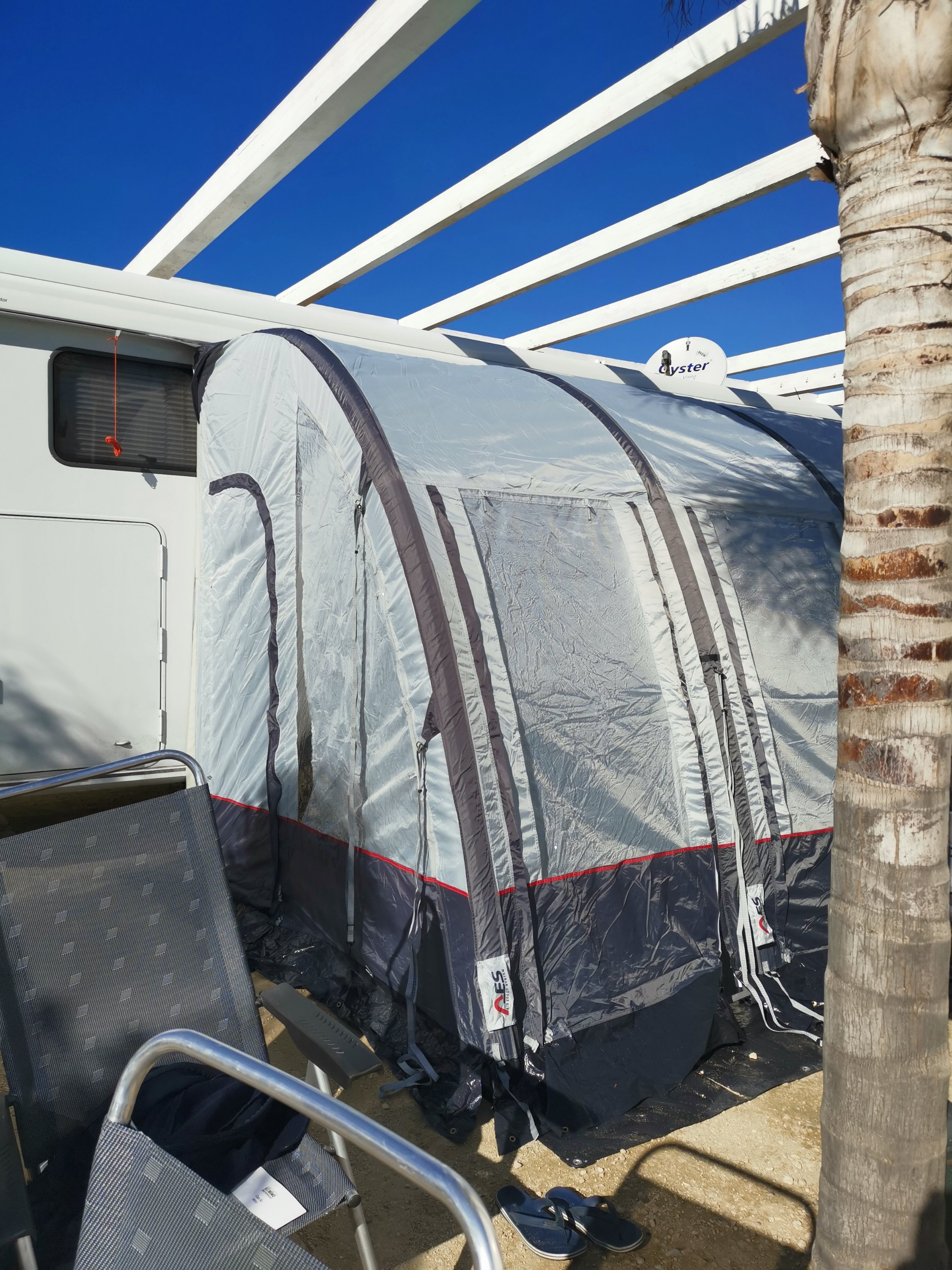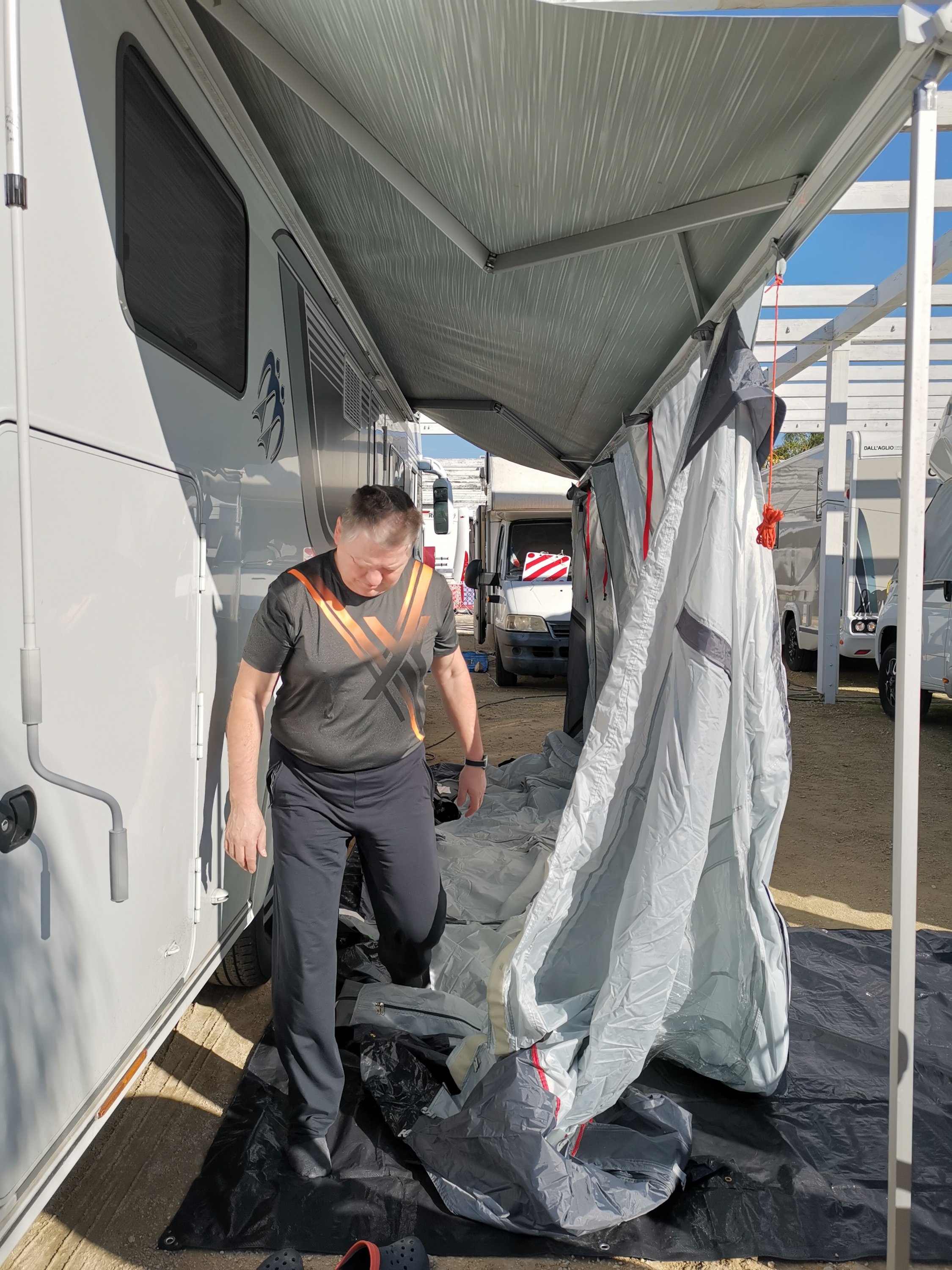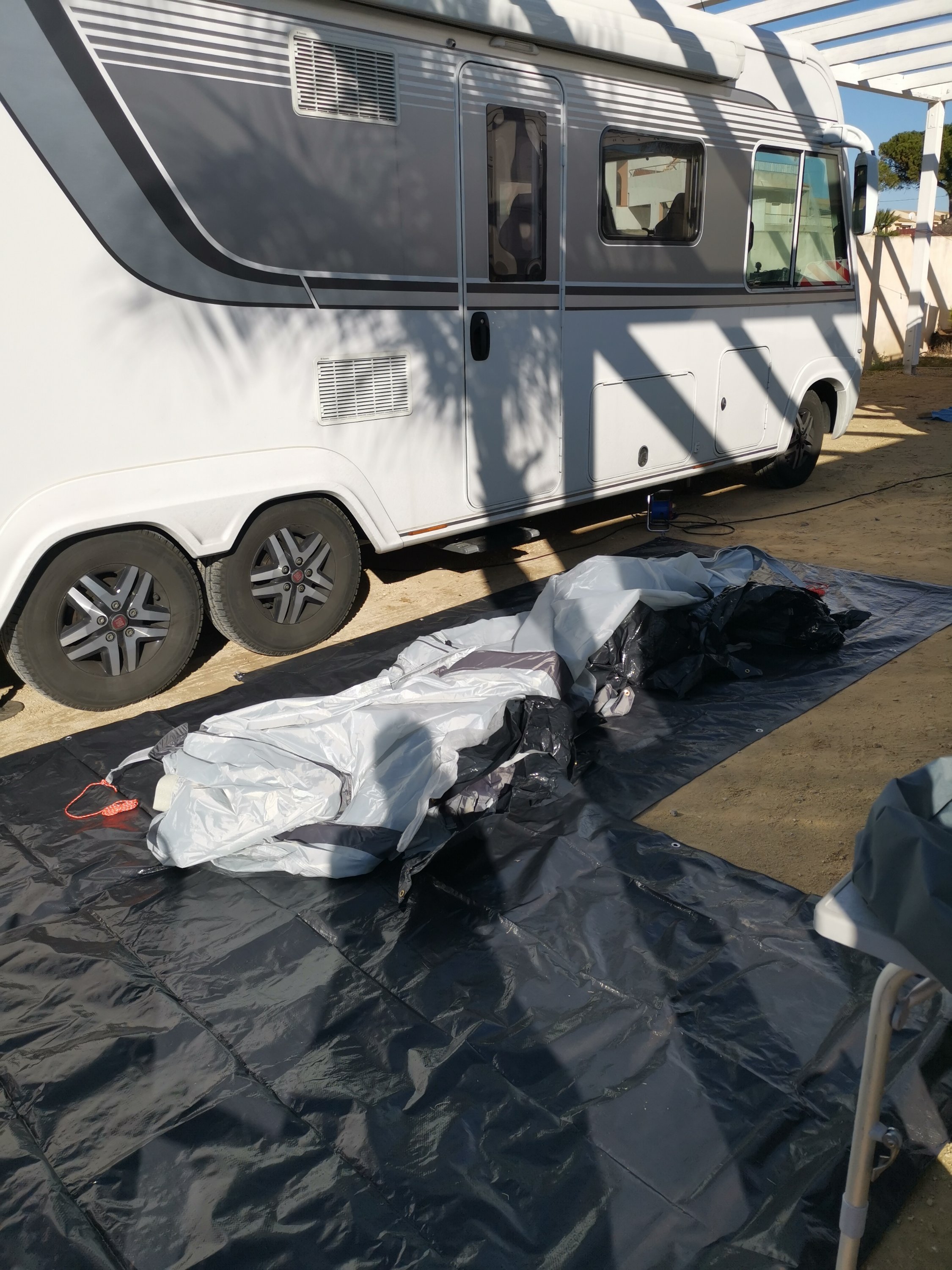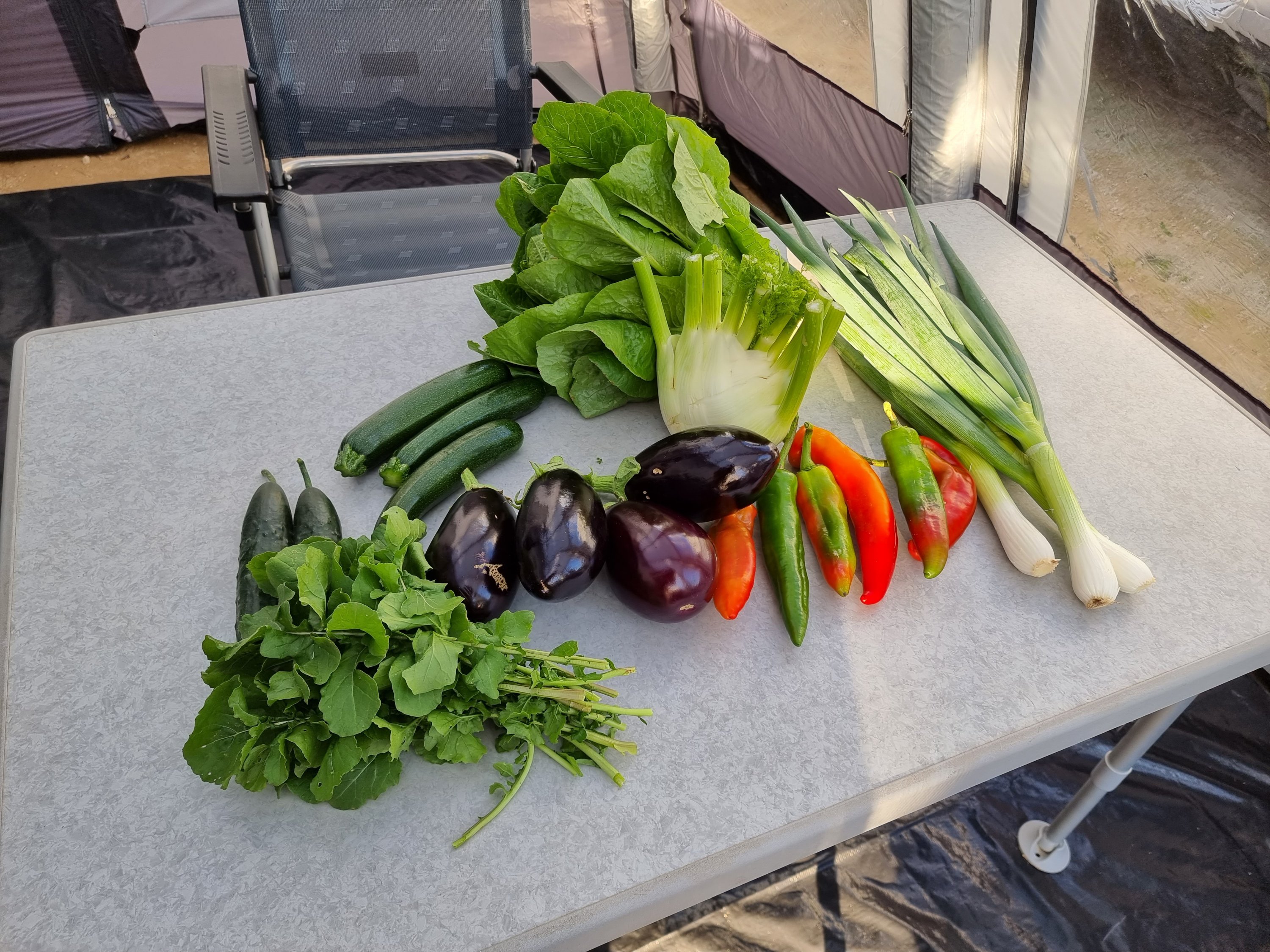 Heute Vormittag ging es an den Aufbau des Vorzeltes, am Nachmittag zum Gemüsebauern zum Einkauf und anschließend zum Strandspaziergang.