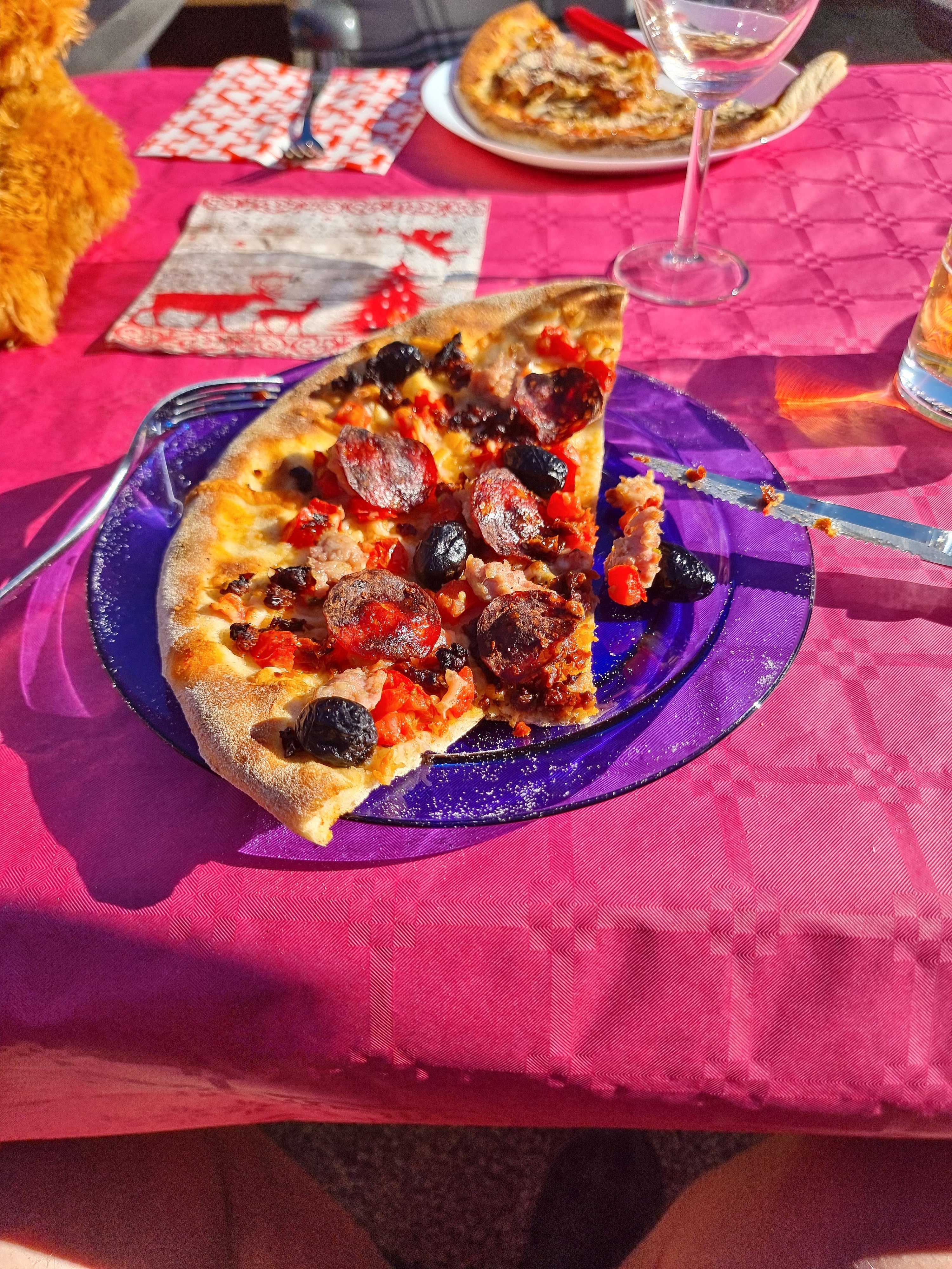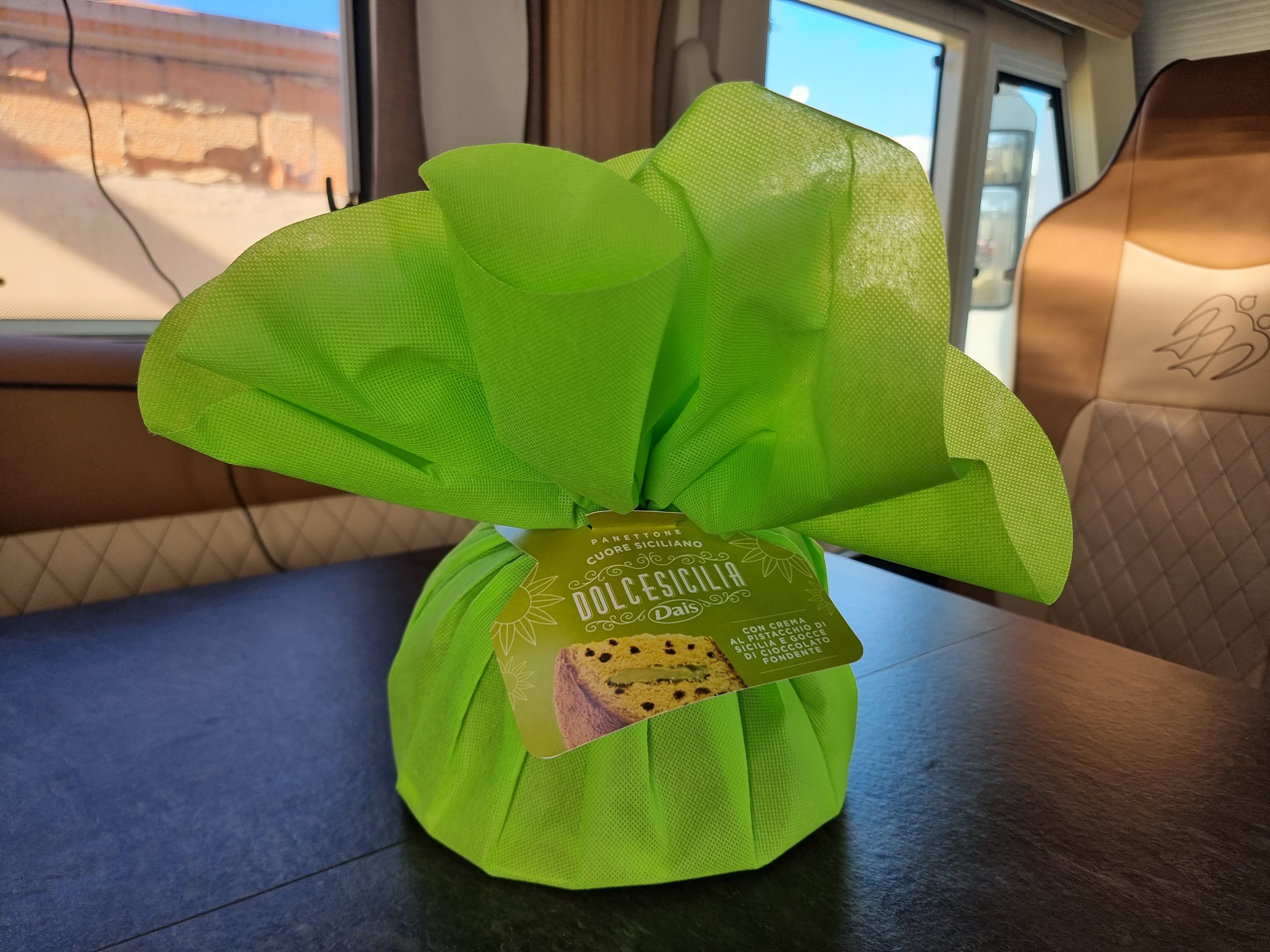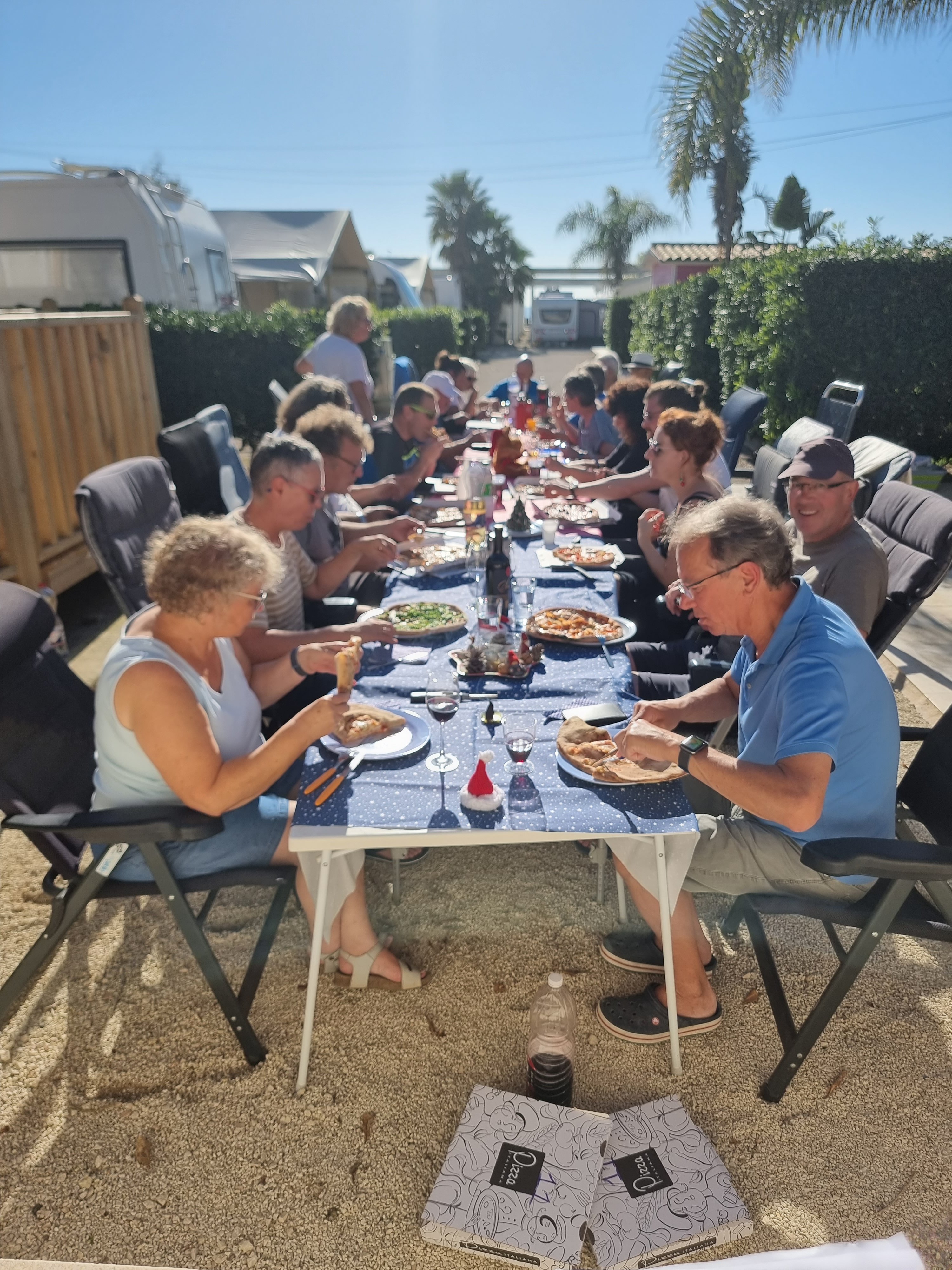 Bei perfektem Wetter und 19°C ab ins Meer oder ein Sonnenbad nehmen. Zu Mittag gibt es eine gemeinsame Tafel mit Pizzaessen und ein netten Umzug der italienischen Kollegen. Vom Campingplatz haben wir auch noch ein Weihnachtsgeschenk bekommen, einen sizilianischen Panettone