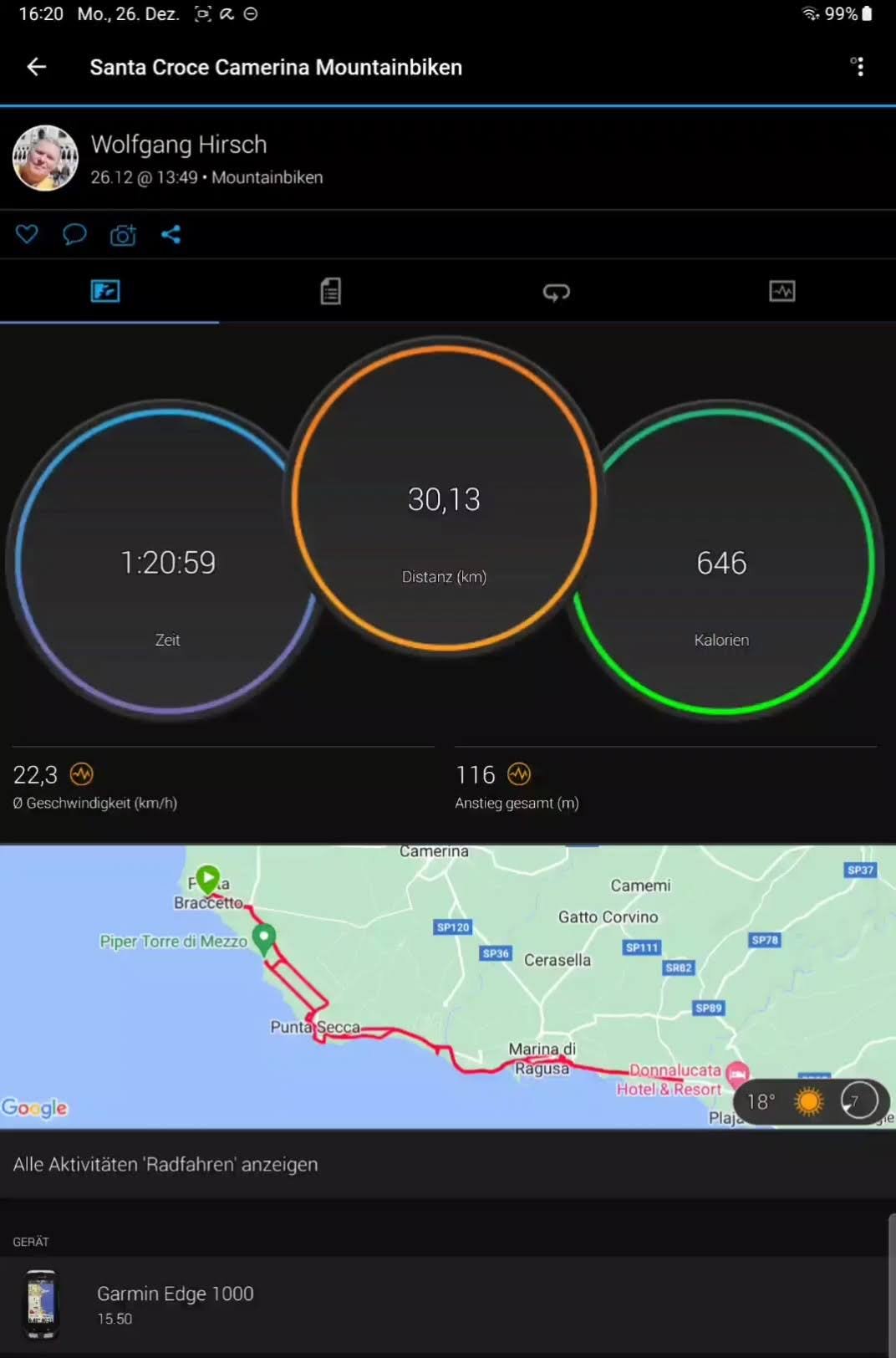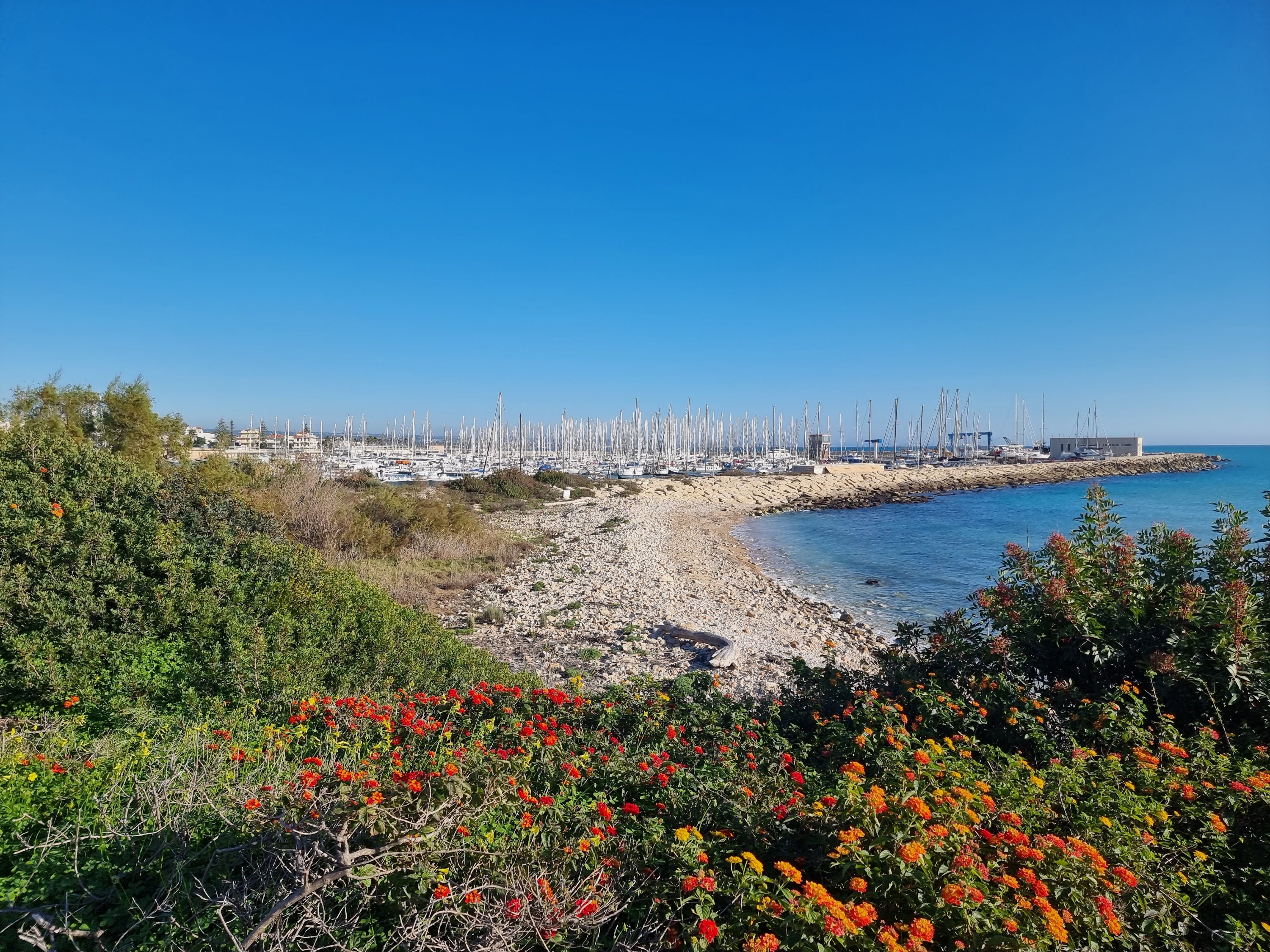 Am Vormittag war es warm, aber die Sonne wurde durch Hochnebel verdeckt. Ab Mittag gab’s wieder strahlend blauen Himmel und damit war eine Radtour angesagt. Es ging über Punta Secca nach Marina di Ragusa und noch etwas weiter.