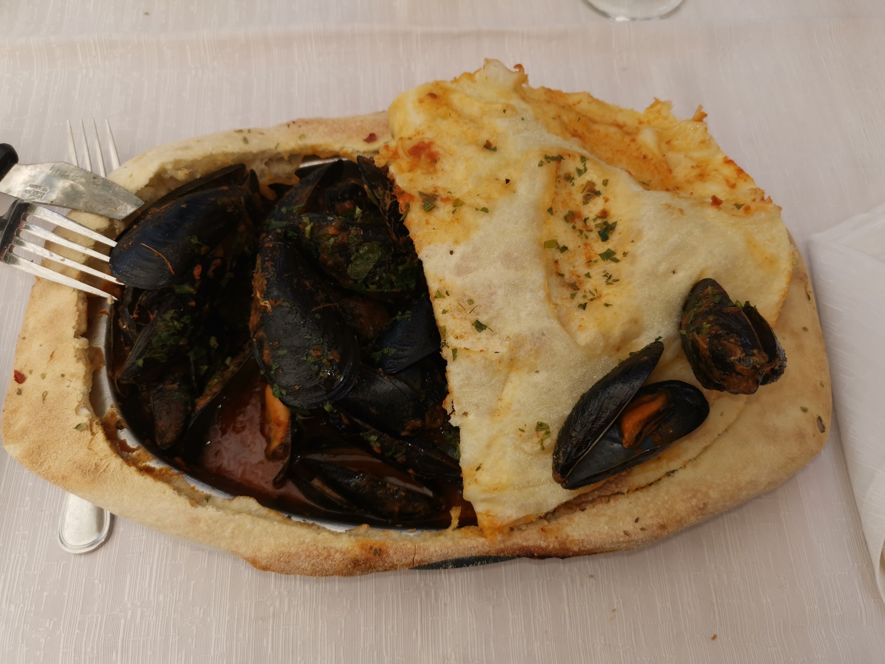 Heute war ein abwechslungsreicher Vormittag. Wir mussten einen Platz für unseren weiteren Aufenthalt organisieren, zur Auswahl stand der Nachbarplatz oder ein vier-tägiger Zwischenstopp am Stellplatz unseres Platzes und danach wieder auf den Campingplatz zu übersiedeln. Wir entschieden uns für die zweite Variante. Danach machte eine Gruppe vom Campingplatz einen Ausflug nach Donnafugata. Wir fuhren bei wunderbarem Wetter mit dem Roller. Der Ausflug führte uns zur Trattoria Al Gattopardo, die Spezialität ist hier zuppa di cozze in crosta.