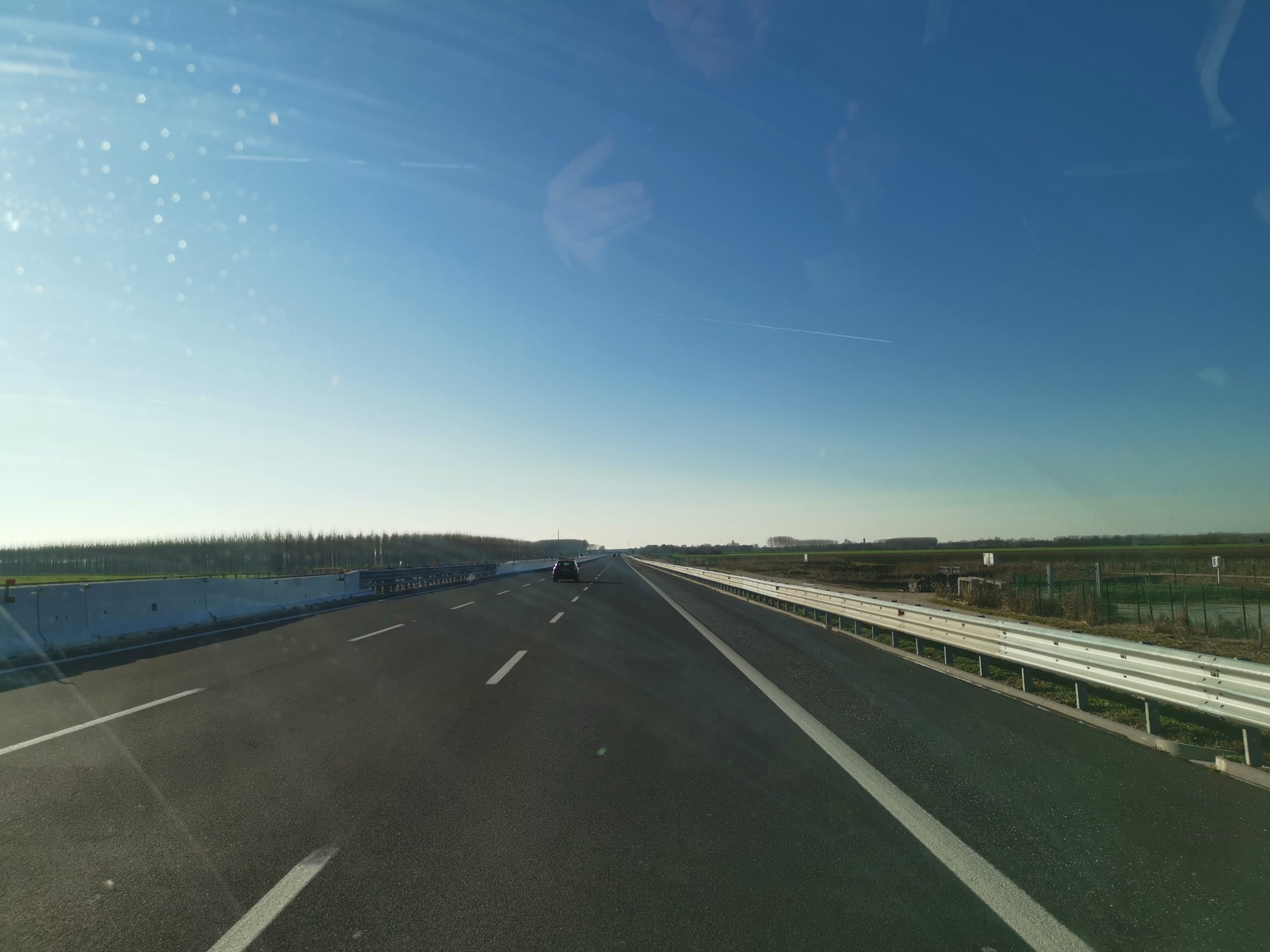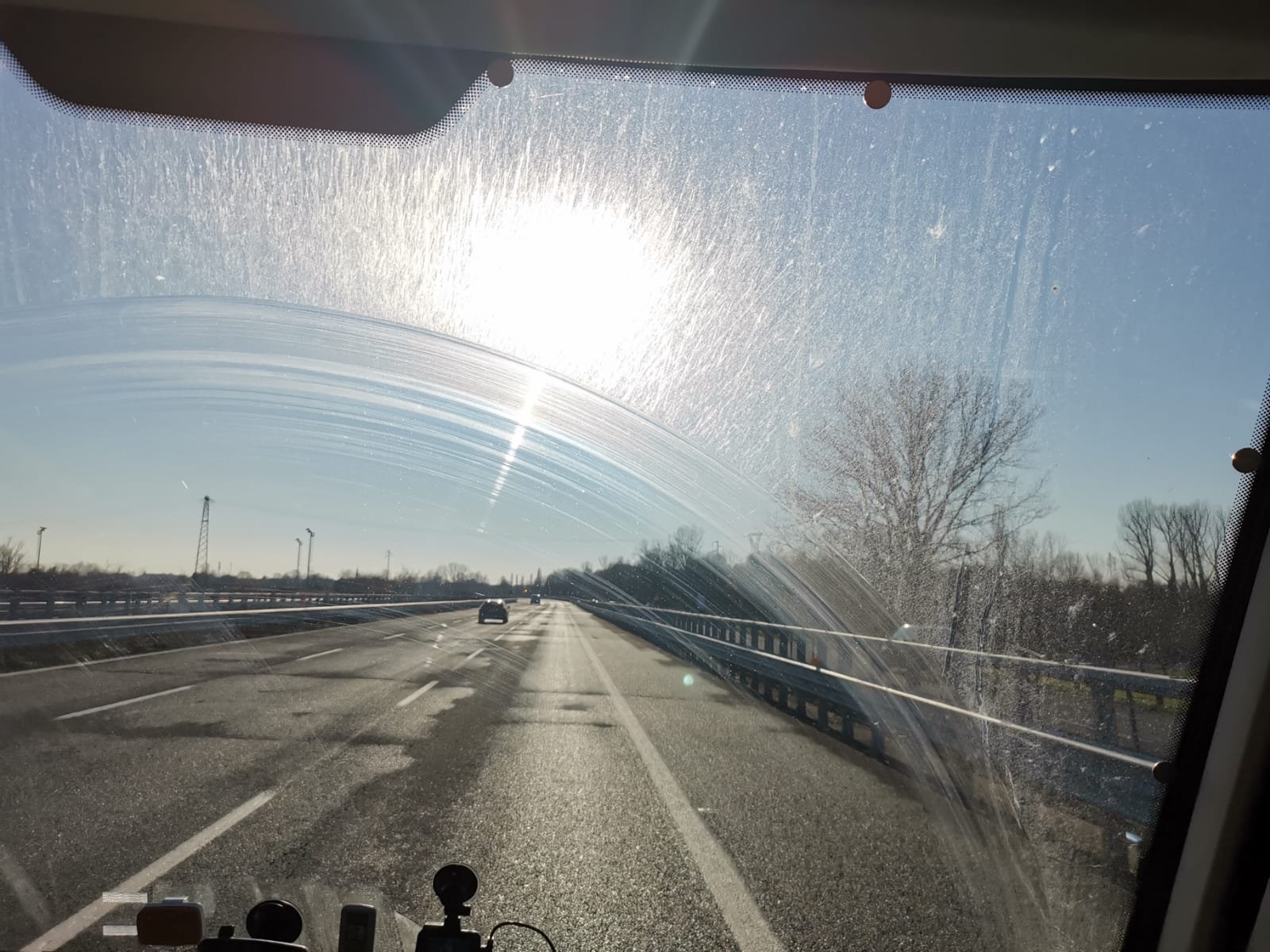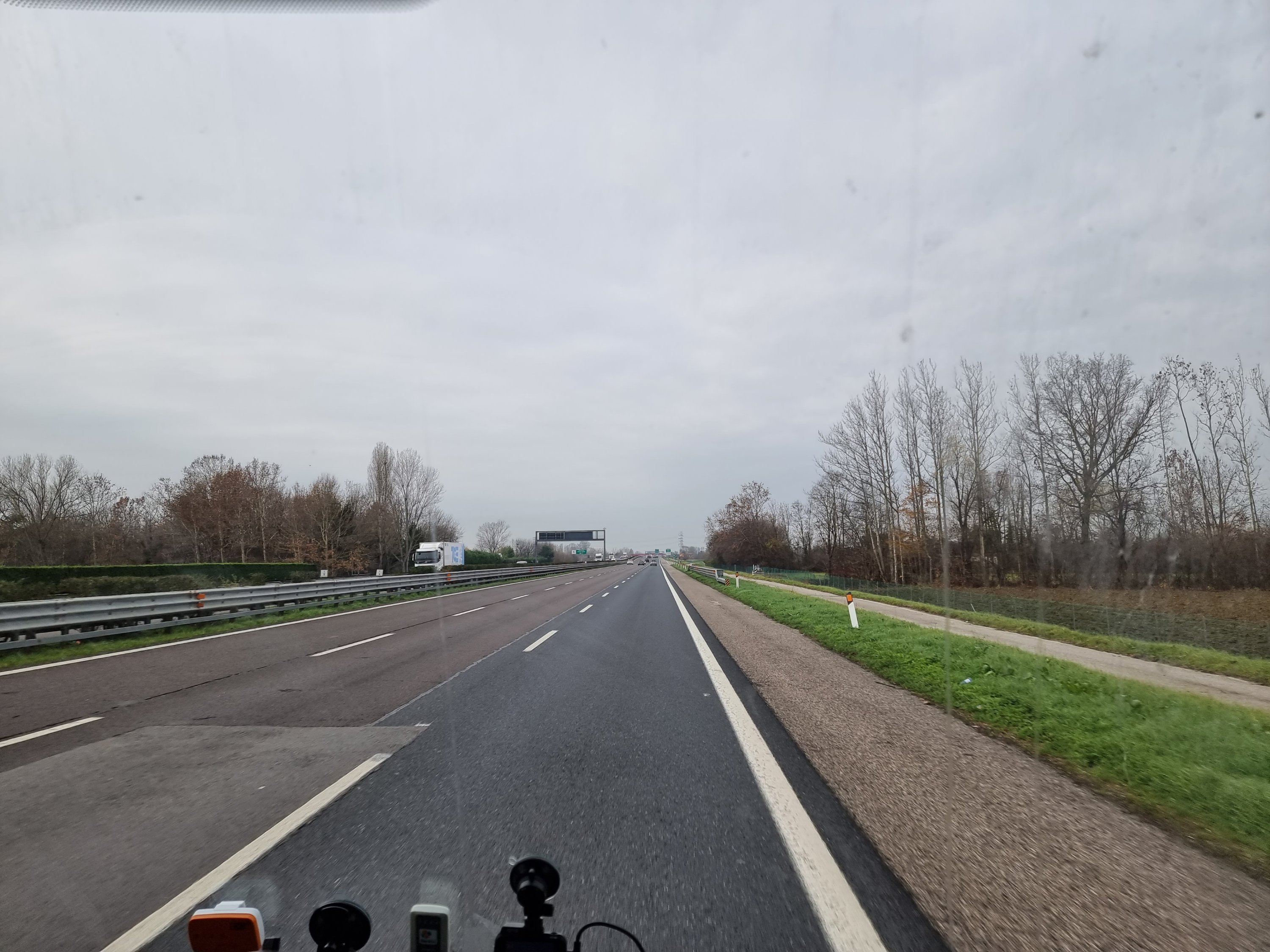 Heute Früh ging es bei -4°C in Richtung Süden bis zum Wechsel bei Sonnenschein, dann bis ins Kanaltal war es trüb und immer kälter mit Schnee neben der Fahrbahn. Aber je näher wir dem Meer kamen, desto schöner wurde das Wetter, bei der Ankunft in Mestre hatten wir Sonnenschein und 10°C.