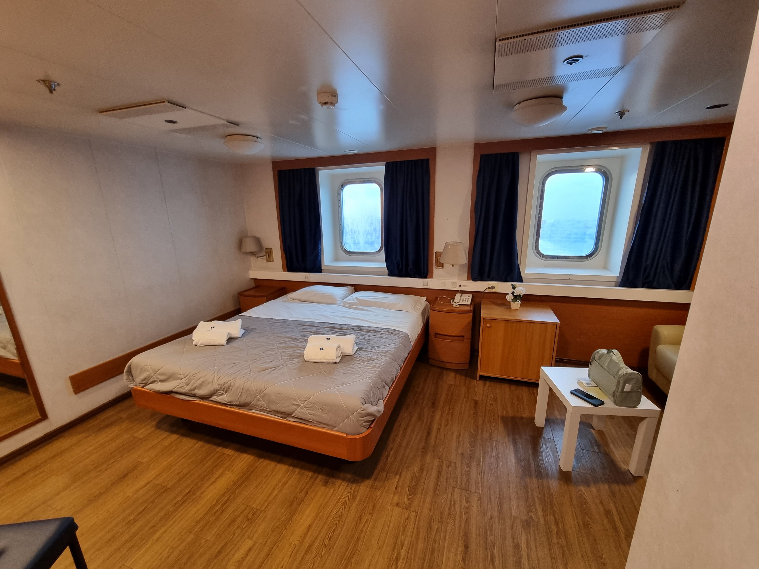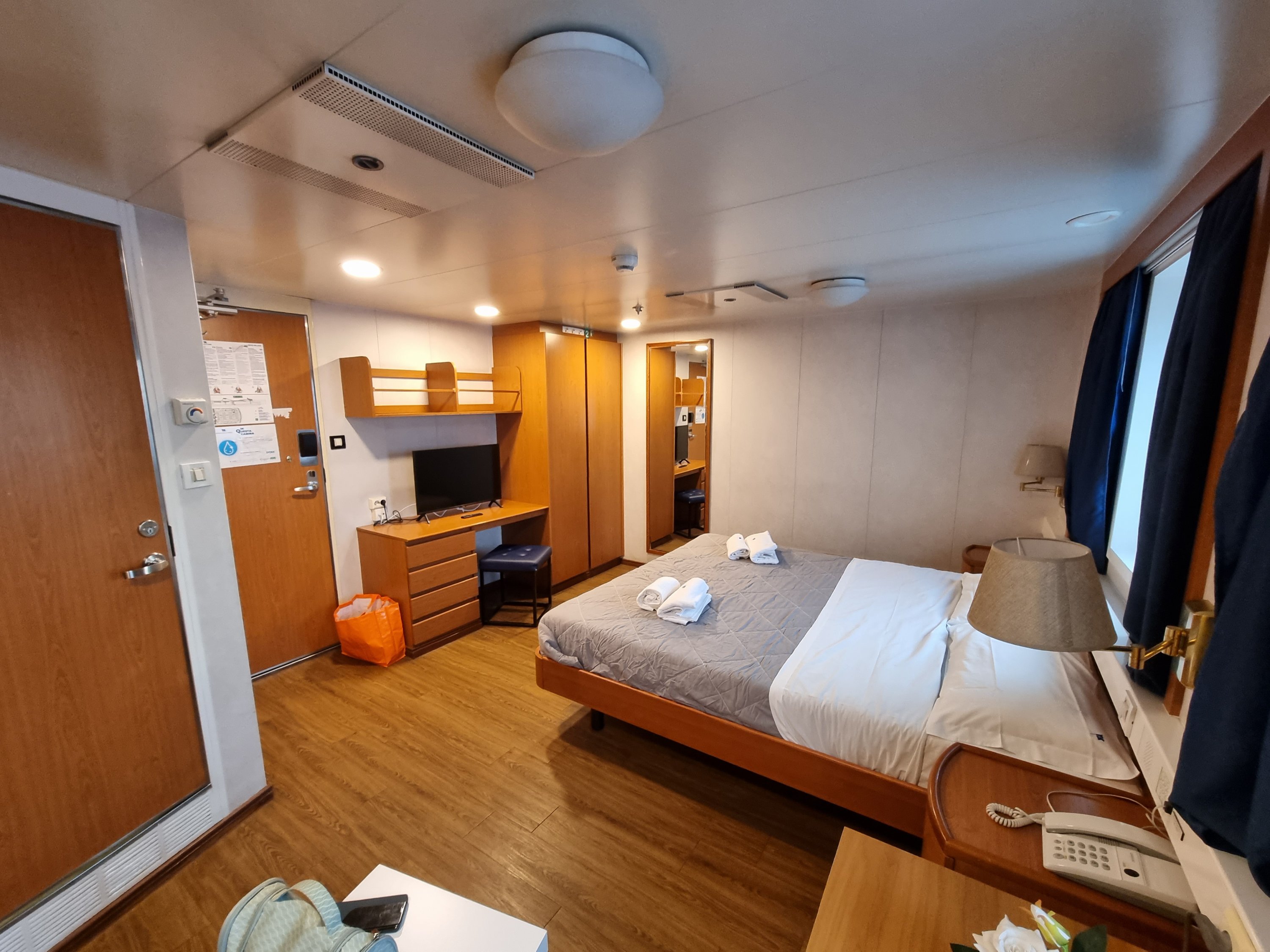 Heute ging es von Venedig nach Livorno. In der Früh 4°C und Hochnebel. Auch durch die Toskana wurde das Wetter nicht besser, erst in der Nähe der Küste war es wieder wärmer. Das Einschiffen fand heute bereits ab 15:30 statt und um 16:00 waren wir schon in der Kabine. Diesmal zum Ausprobieren in einer Deluxe-Version und die Kabine ist wirklich komfortabler als die Standardkabine.