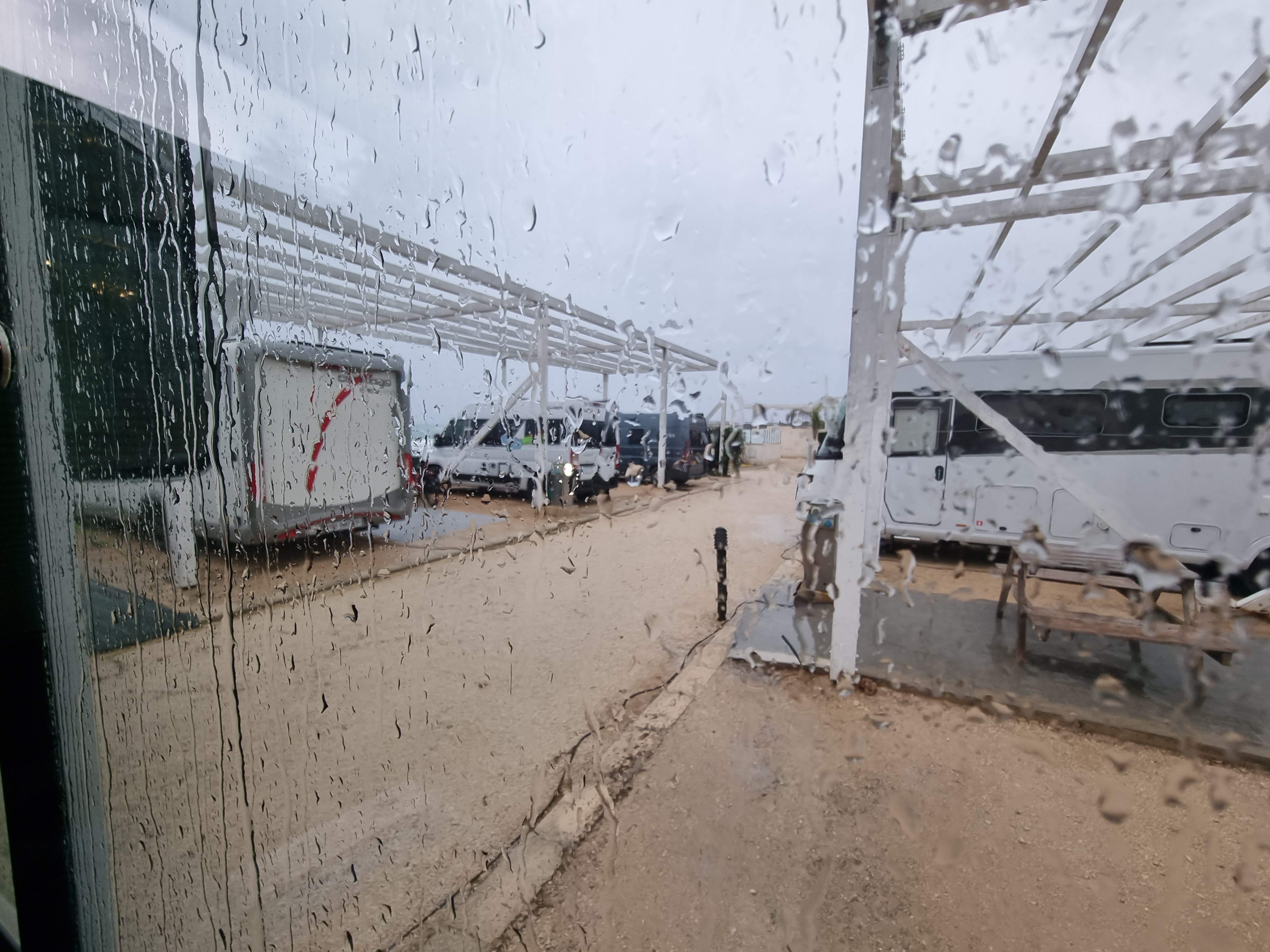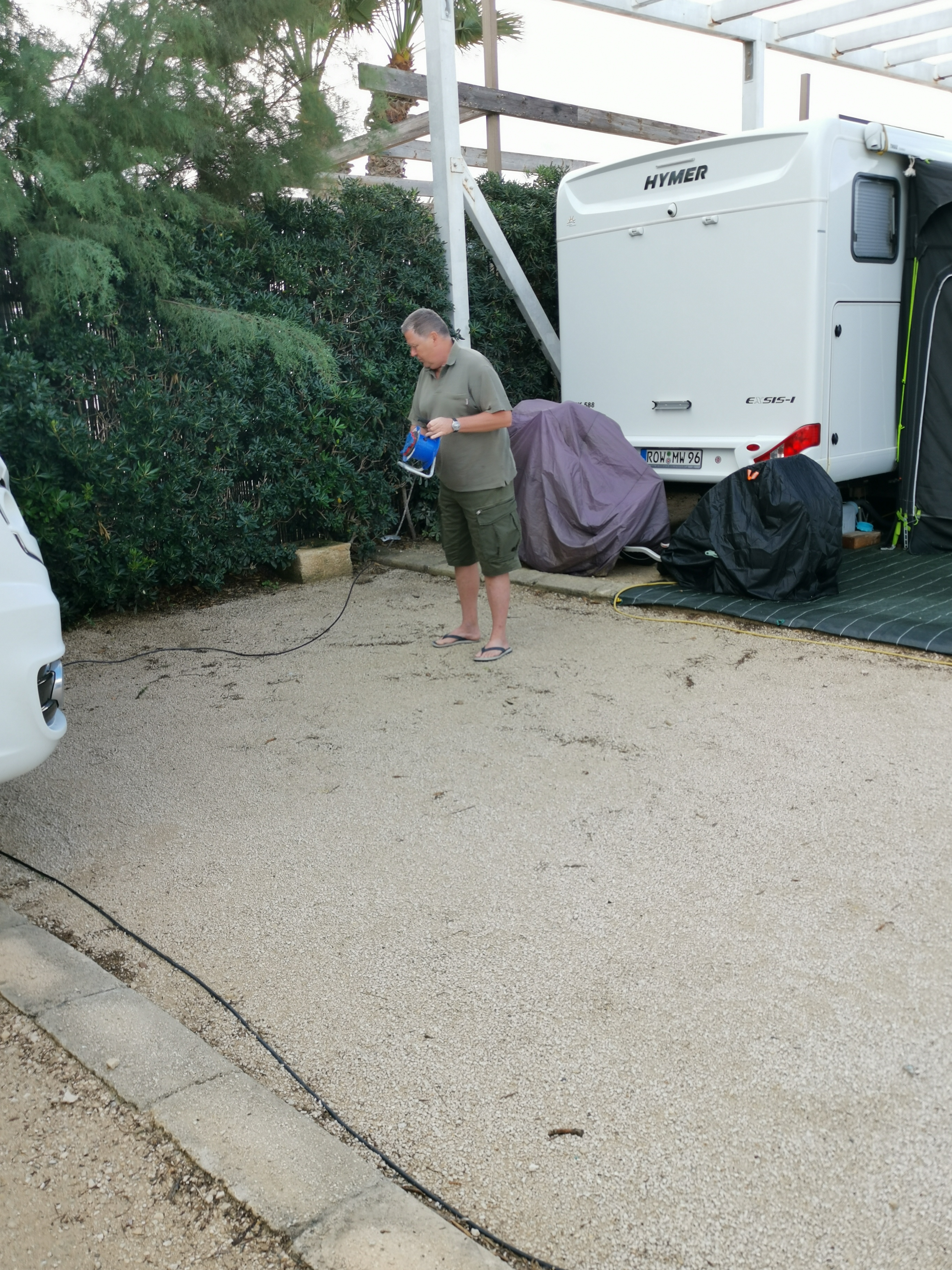 Da für morgen die ersten Regenschauer angesagt sind, wurden bereits heute das Vorzelt und die Einrichtug abgebaut und im Wohnmobil verstaut.