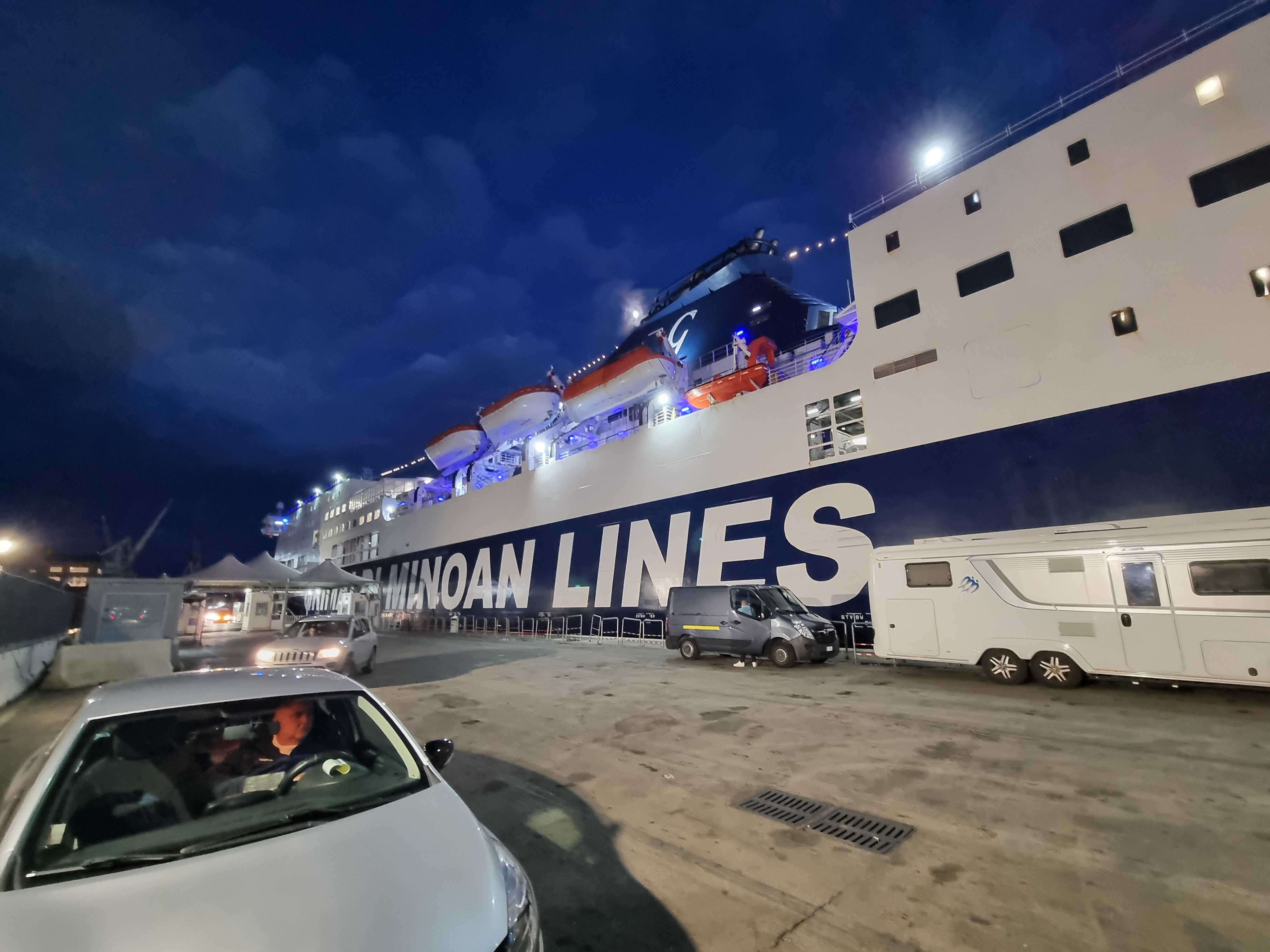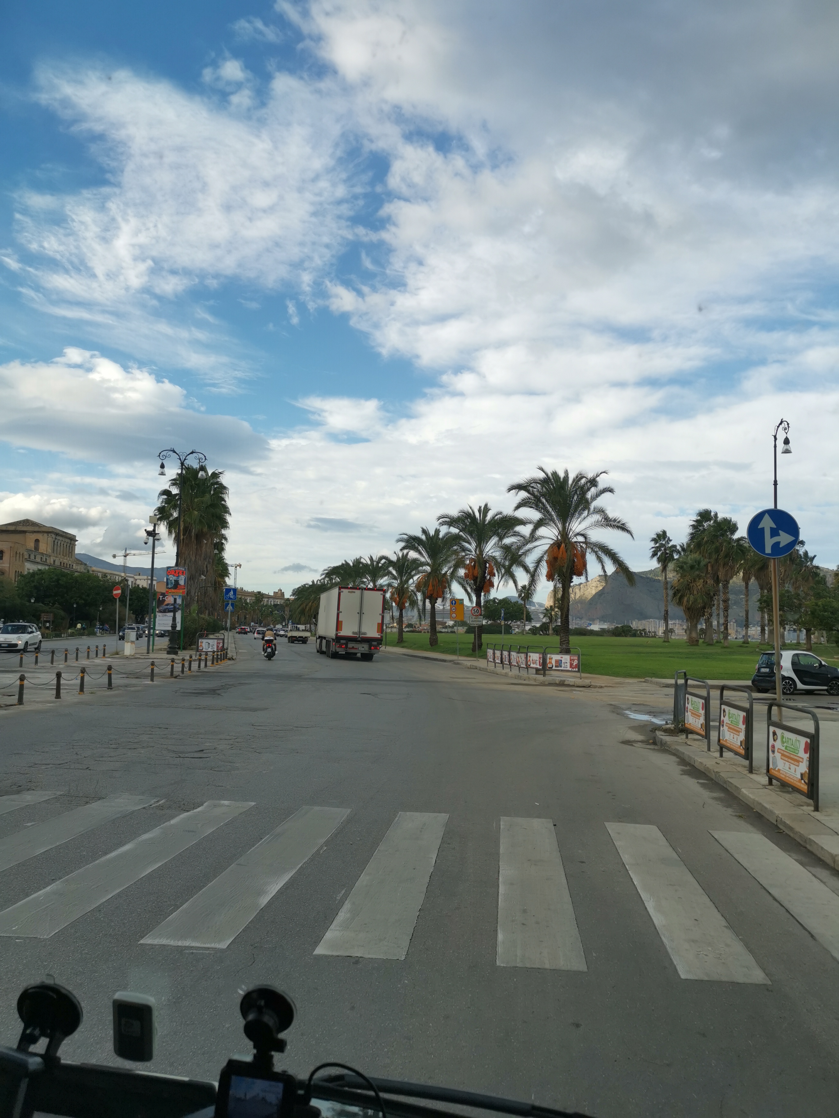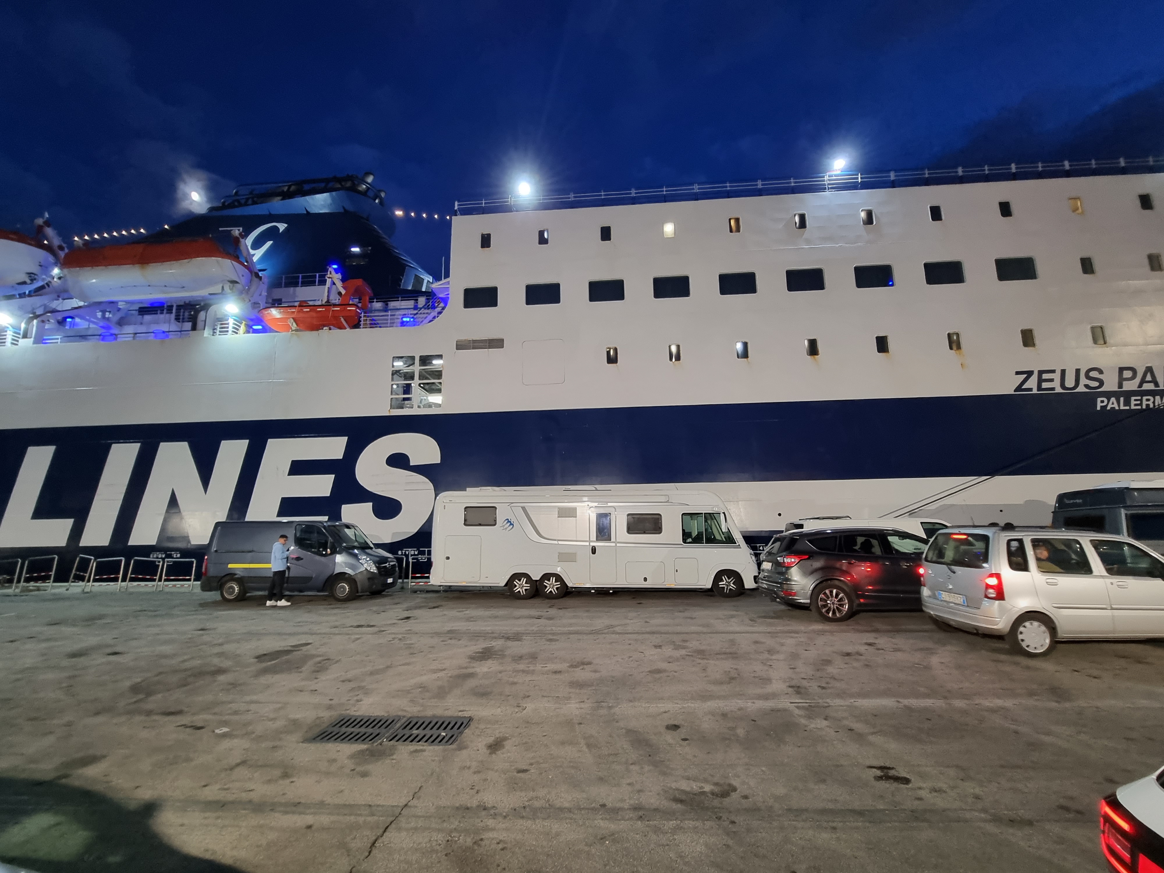 Heute ging es nach einer regnerischen Nacht, einem gutem Frühstück und nach ausgiebiger Verabschiedung ab in Richtung Palermo zur Fähre. Da wir informiert wurden, dass unsere Fähre ca. 1,5 h Verspätung hat, konnten wir uns auf der Fahrt viel Zeit lassen. So wurde als erstes die leere Gasflasche gefüllt und dann sind wir gleich nach dem Erreichen der Nordküste Siziliens von der Autobahn auf die Bundesstraße gewechselt. Die Fahrt entlang der Küste war sehr nett, kurz vor der Einschiffung legten wir noch einen Zwischenstopp ein.