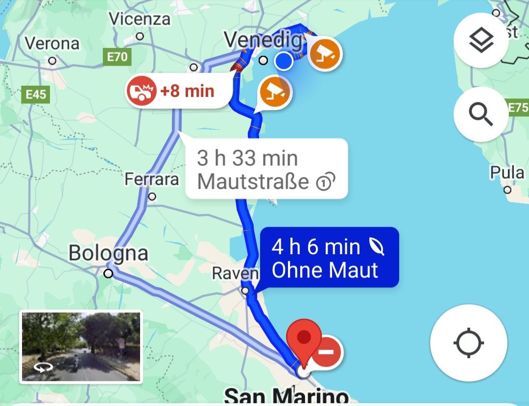 Heute in der Früh ging es nach einem caffè in Richtung Rimini. Der Himmel weinte bei der Abfahrt.