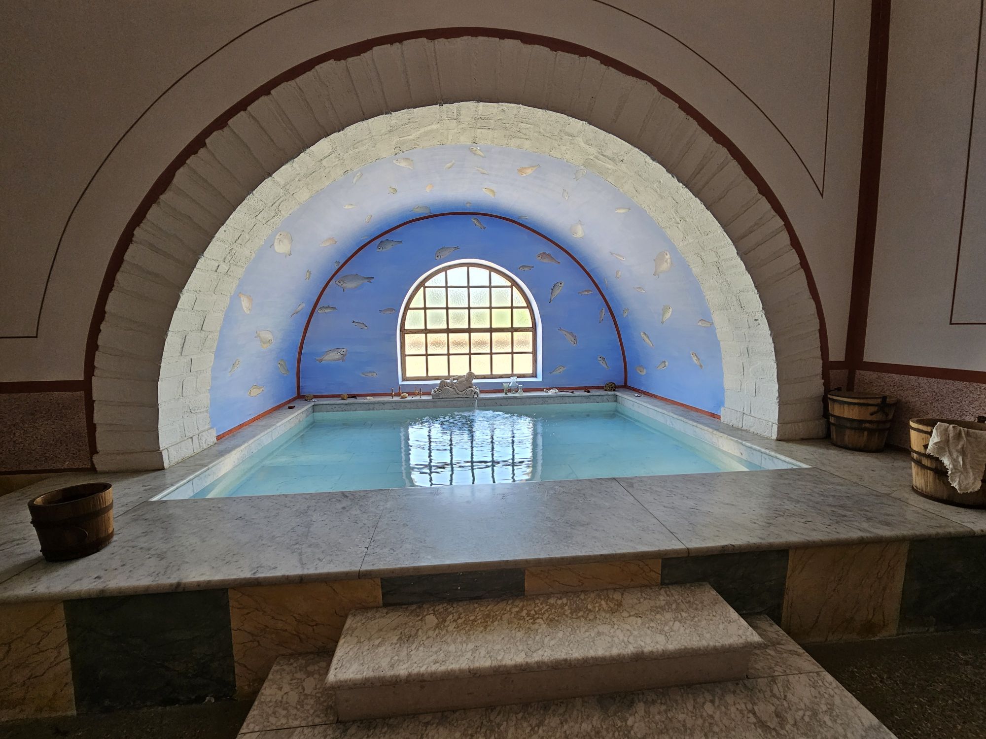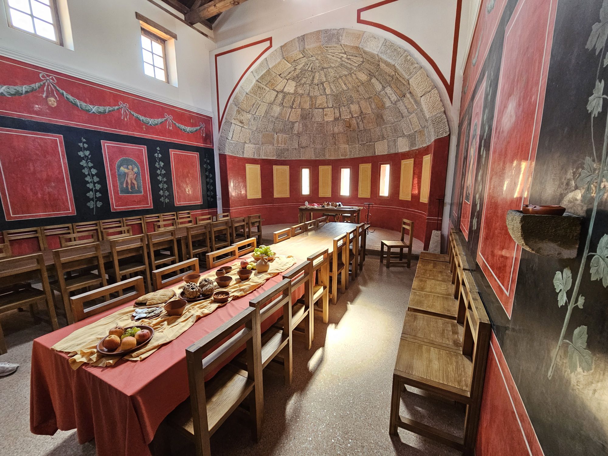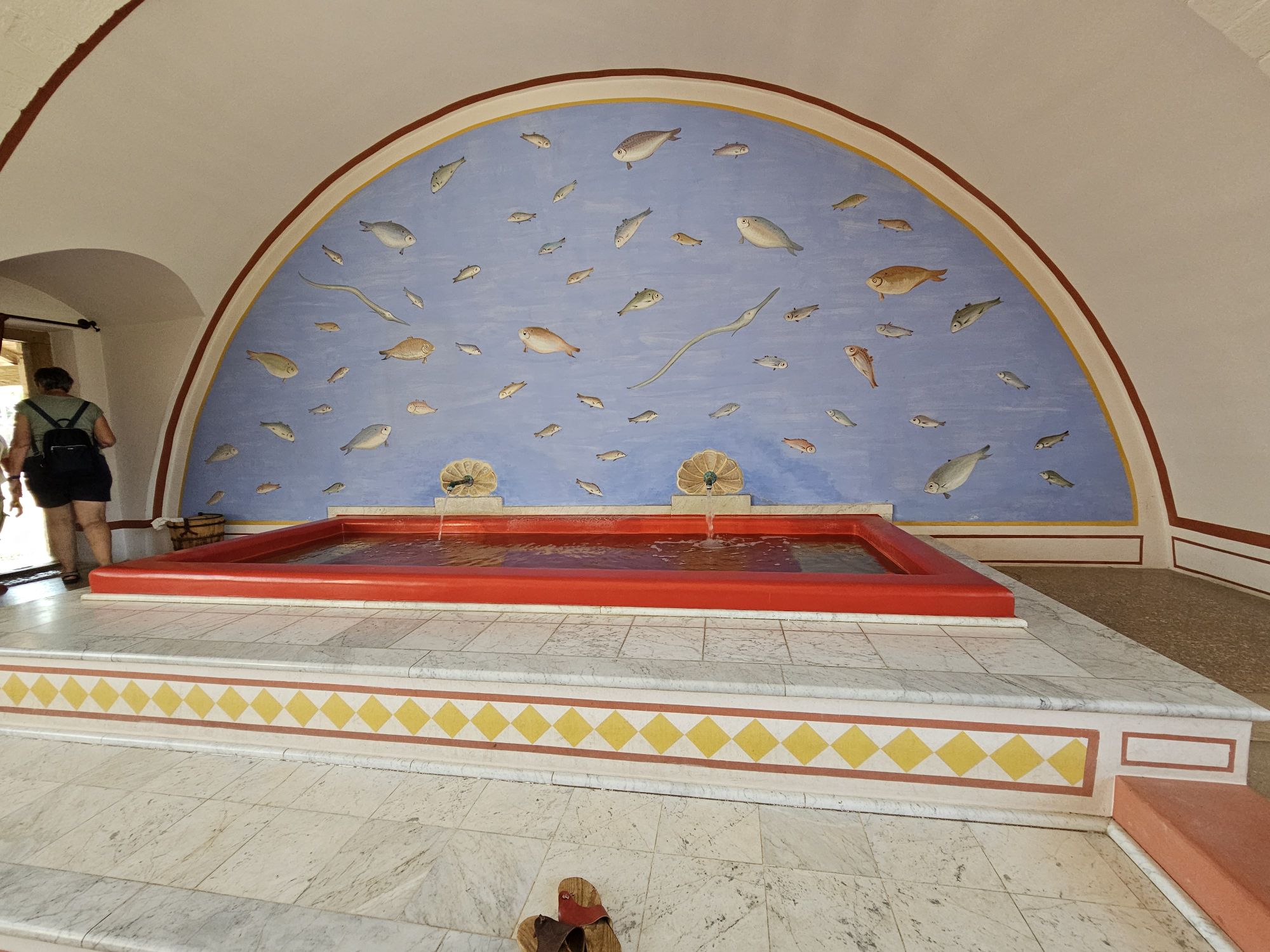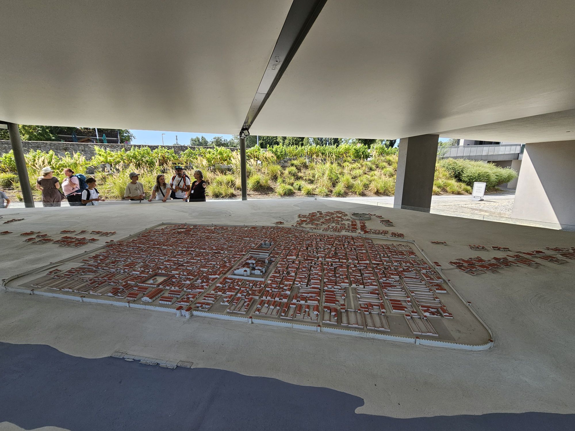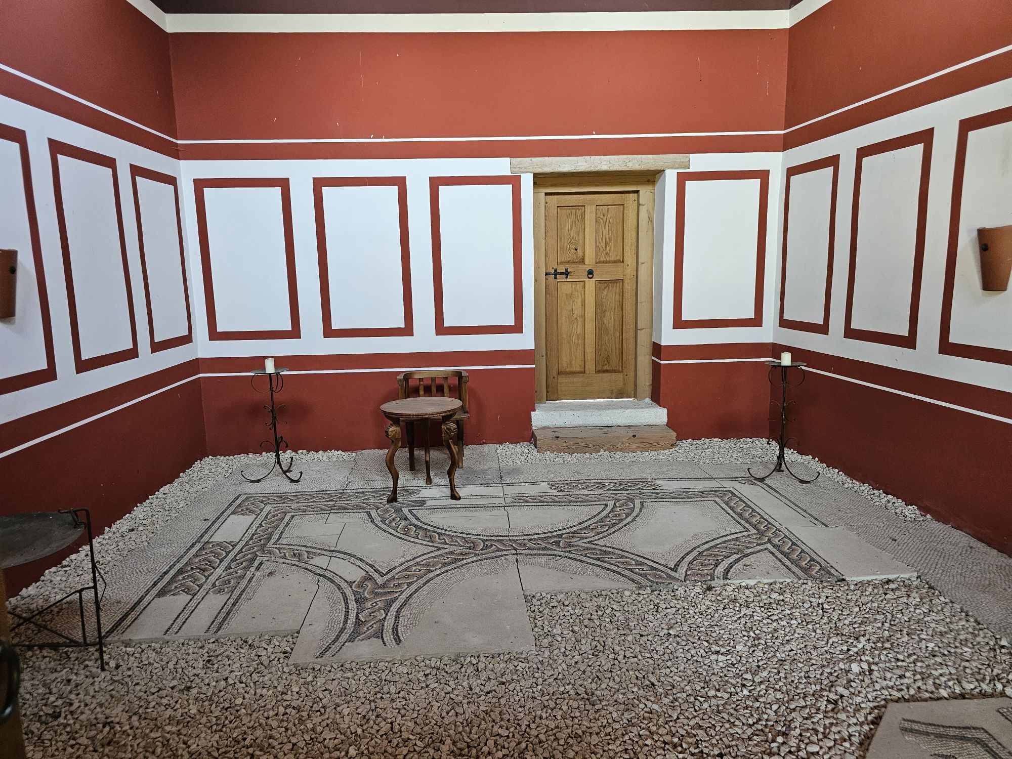 eine riesige Römersiedlung mit rund 50000 Einwohnern von 8 bis 433 n. ChrDie gesamte Anlagebestehend aus der zivilen-und der MilitäranlageBeim Ölhändler gab es Olivenöl aus dem ganzen Mittelmeerraum Spanien, Italien, Griechenland und Kroatien, an Hand der Beschriftung auf den Amphoren nachvollziehbar.das Lager des ÖlhändlersDas Haus eines wohlhabenden HändlersEine der vielen öffentlichen Bedürfnisanstalten, in denen im wahrsten Sinne des Wortes Geschäfte gemacht (abgeschlossen) wurdendie erste Halle einer privaten Therme mit „orginaler“ Fußbodenheizung. die noch in Betrieb istKaltes Becken2. Thermenhalle etwas wärmerUnd hier das Becken in der 3. Halle – hier hatte der Boden ca. 50 °C daher mussten Holzsandalen getragen werden.Dann ging es weiter in den privaten Bereich mit einem beeindruckenden Speisesaalmit toller Wandmalereidie Küche mit funktionsfähigem Ofender „Arbeitsraum“ des HändlersIn einer zweiten Villa, hier ist das Bodenmosaik noch erhaltenDann ging es weiter in das ehemalige AmphiteatherUnd als Abschluss noch zum Heidentor