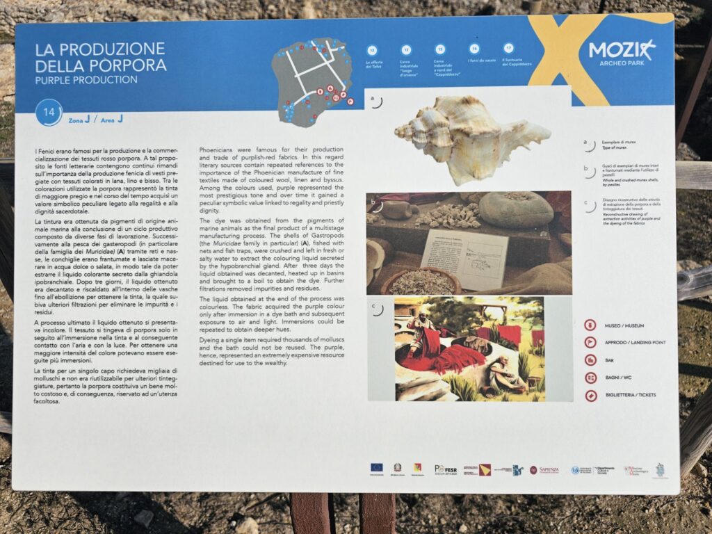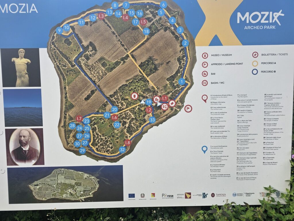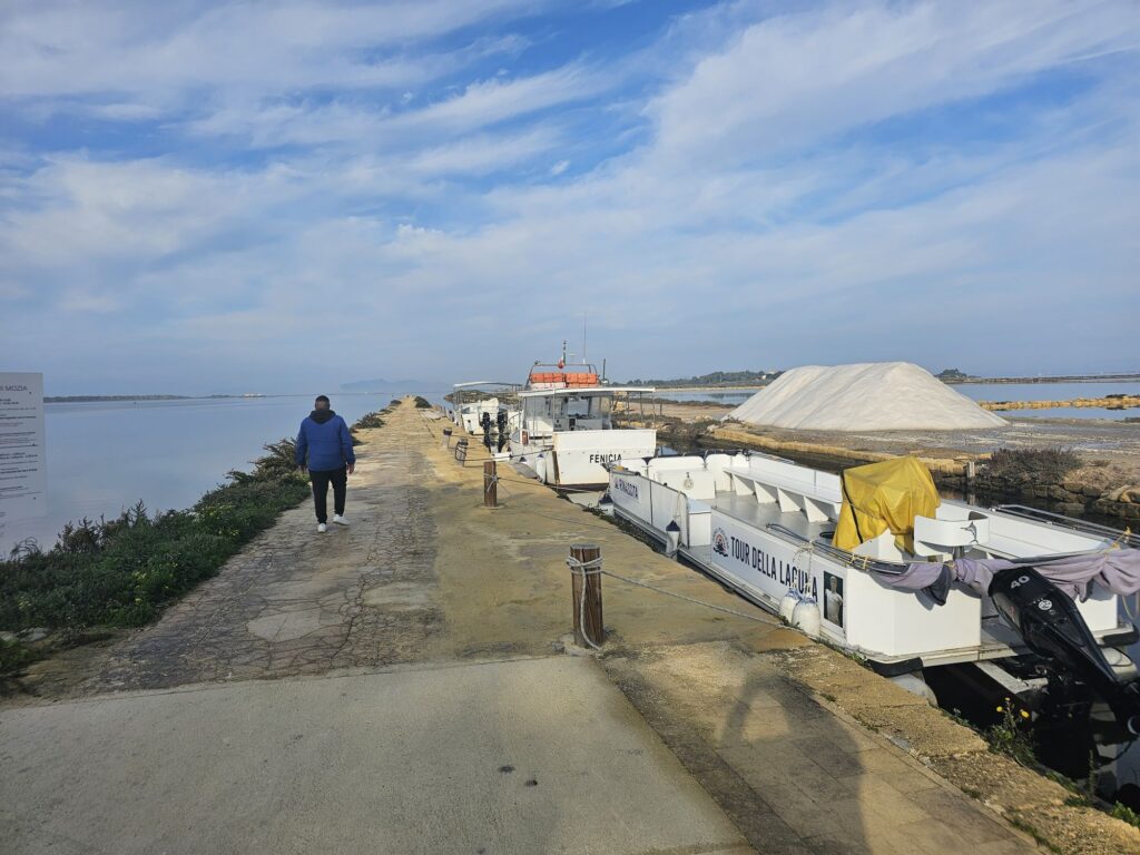 Zuerst ging es vom Stellplatz zur Überfahrtsstelle (Tannenbaum) mit dem Motorrollerdann mit dem Boot zur Inselhinter uns sieht man die Salzberge der SalineMozia – richtig Isola San Pantaleo – ist ein phönizischer Handelsmittelpunkt im Mittelmeer von ca. 800 – 397 vor Christi.der Jüngling von Mozia aus MarmorBodenmosaikeEine Färberei, die Stoffe mit Meerestieren purpurrot einfärbteeine Räuchereidas ehemalige Nordtor, das einen Verbindungdamm zum Festland hatteMorgen geht es weiter zu unserem Platz für das Jahresende.