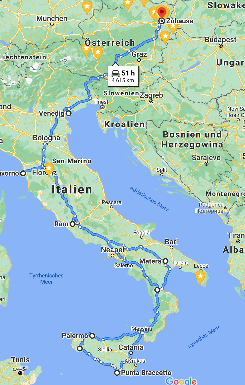 Im Frühjahr ging es nach einem arbeitsreichen Winter für vier Wochen auf eine Italien Rundreise. Es war eine sehr spannende Reise, da wir immer auf der Flucht vor Covid 19 sperren waren.